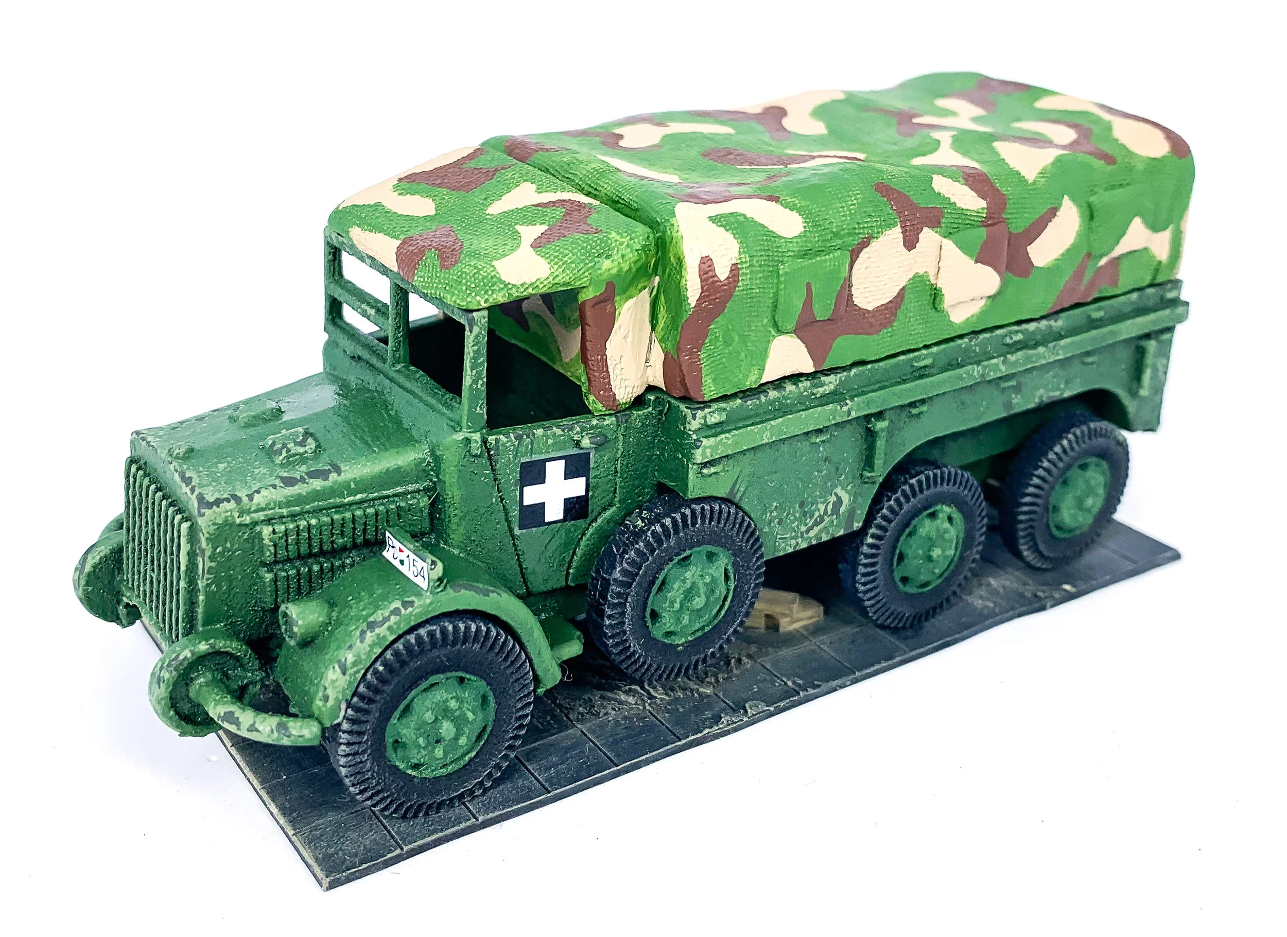 If your vehicle has a camouflage pattern canvas cover like this Botond truck, now is the time to paint that before the next steps.