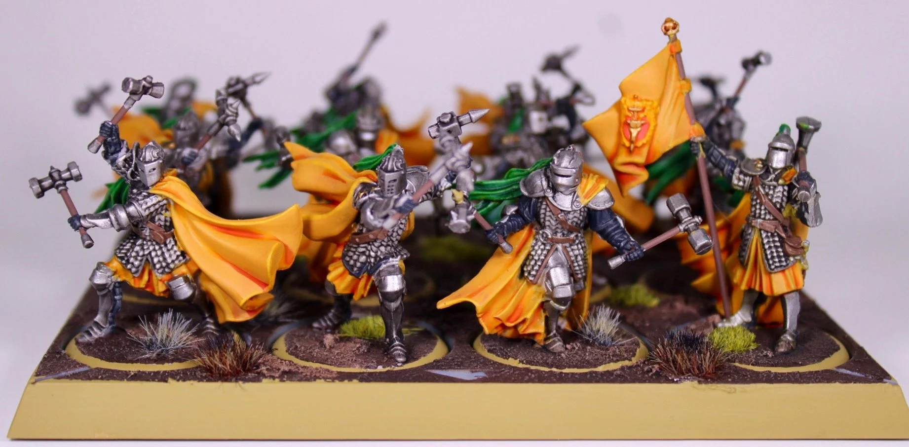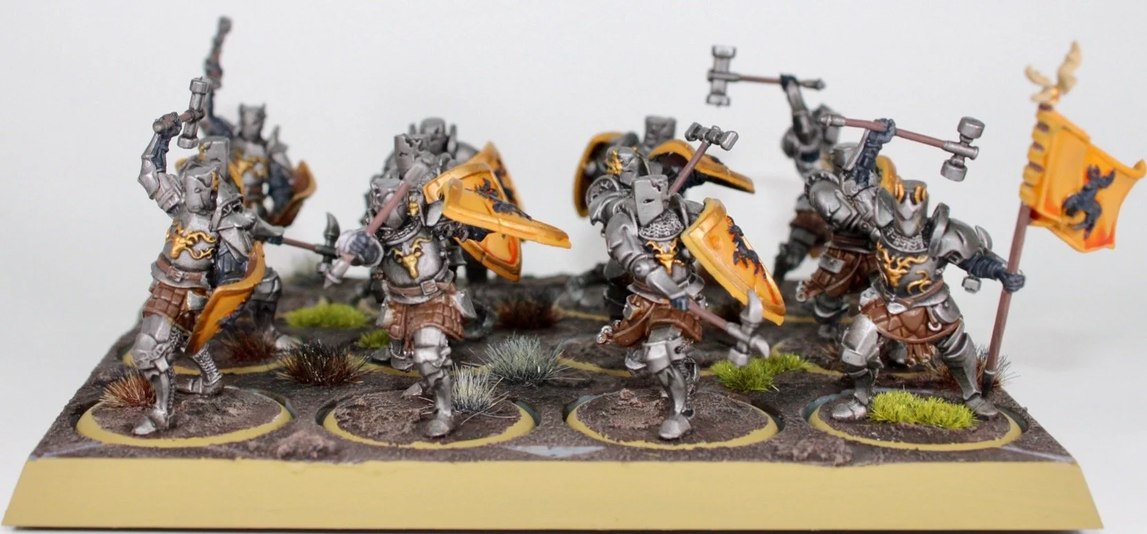 I really like the Kingsmen. I like them because they are pretty cool with their double handed swords, armour, and tabards, but they are really effective in the game, so I enjoy putting them on the field. I also really like the Wardens, their hammers, poses, armour, and especially their scarred shields gave an opportunity to get some decent effects pretty easily and effectively.