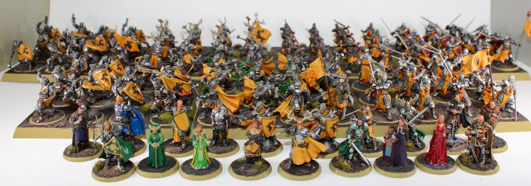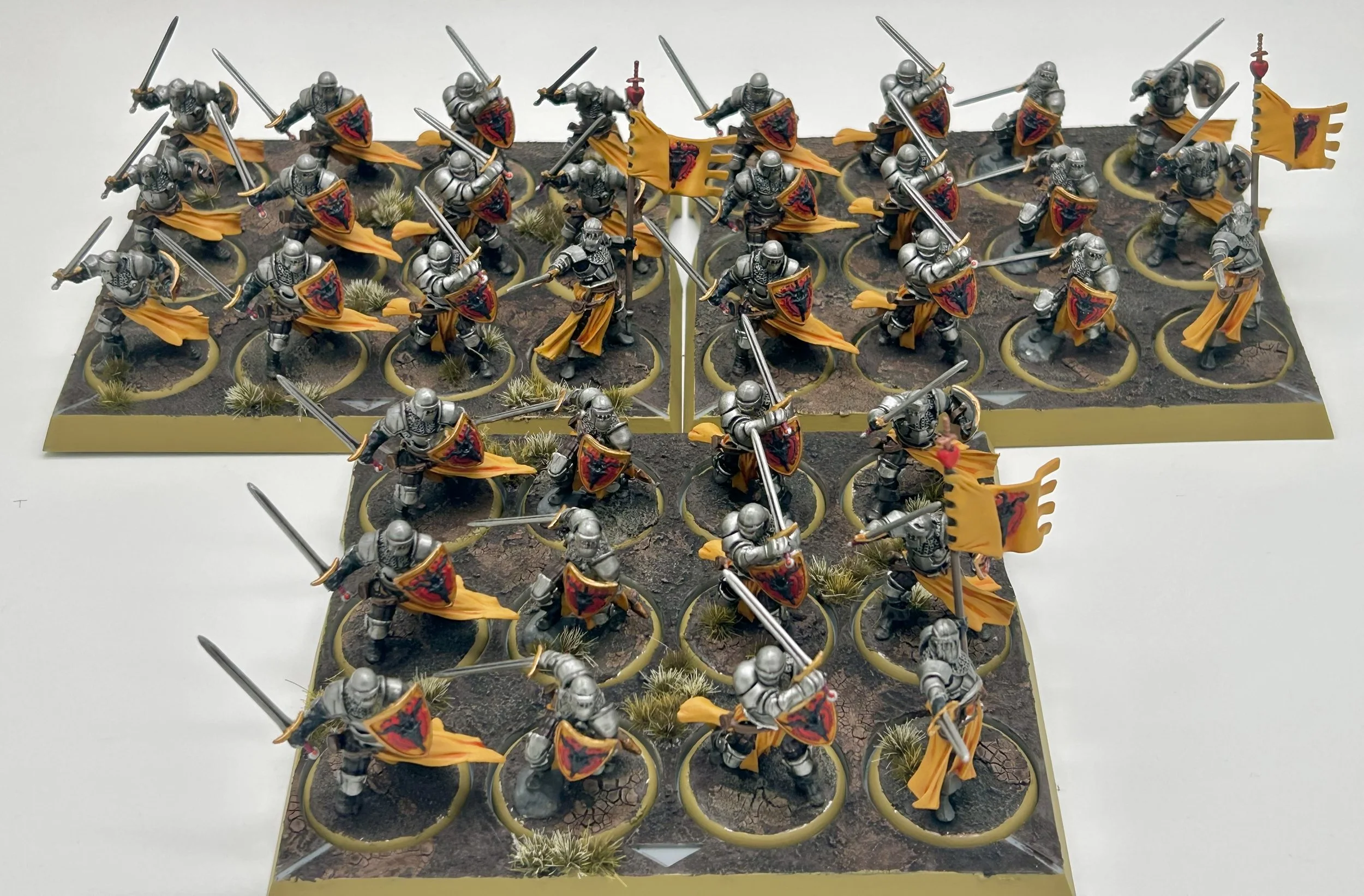 Between February and June 2025, I set about these lads with reckless abandon. It is about half of the current Baratheon faction for the A Song of Ice and Fire Miniatures game. Lots of yellow, lots of shiny armour! I didn’t get too deep into the standard/quality of these guys; finishing the project to a decent tabletop quality within a short space of time was the key.