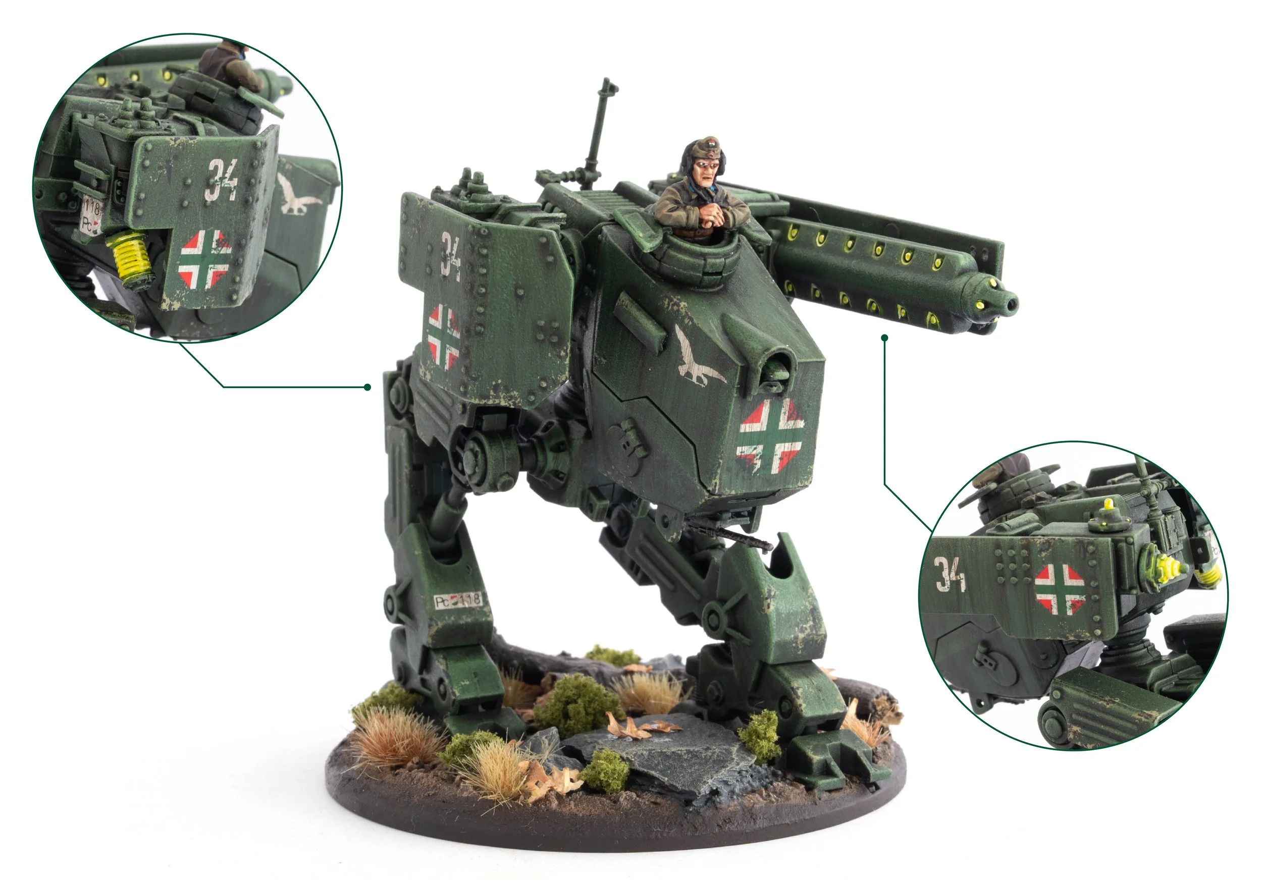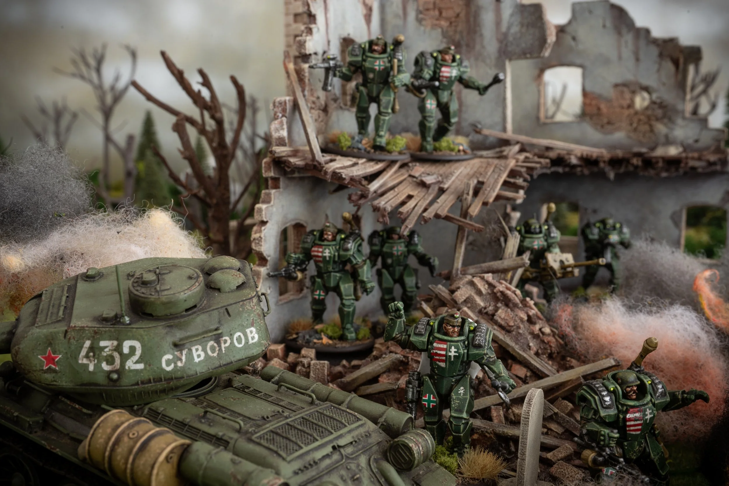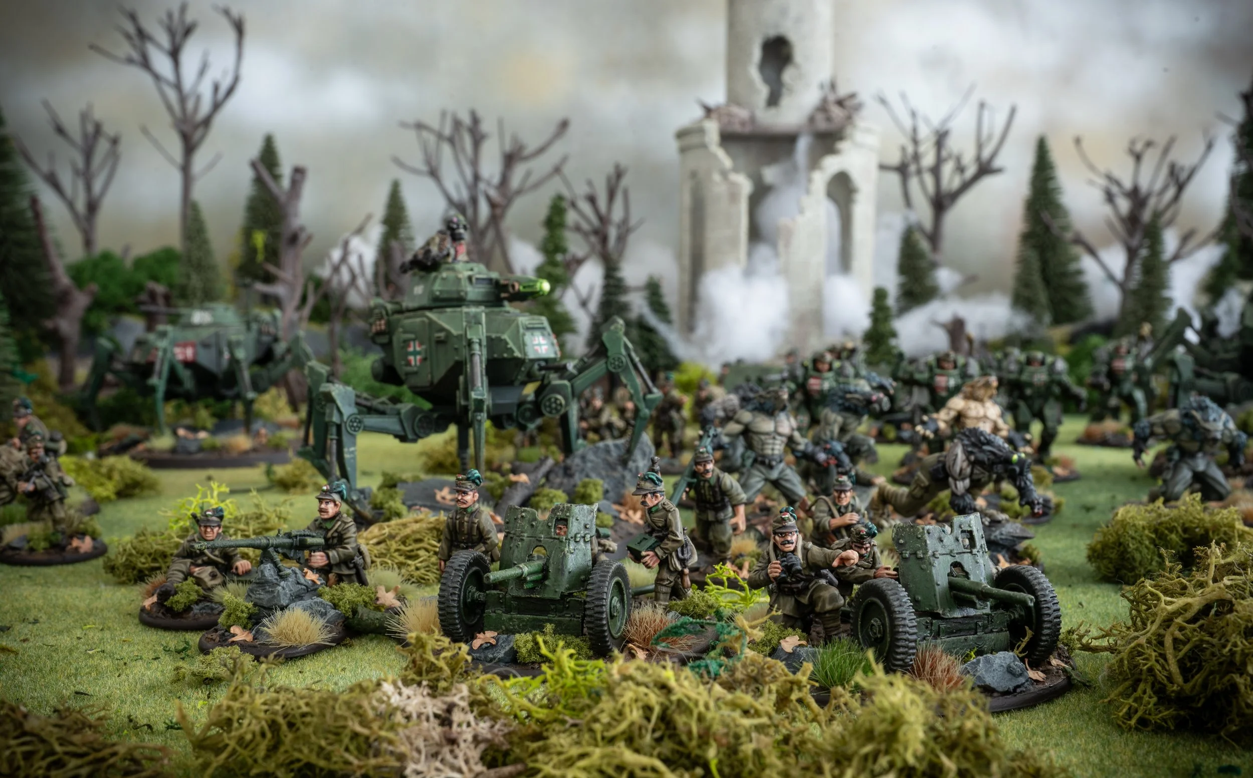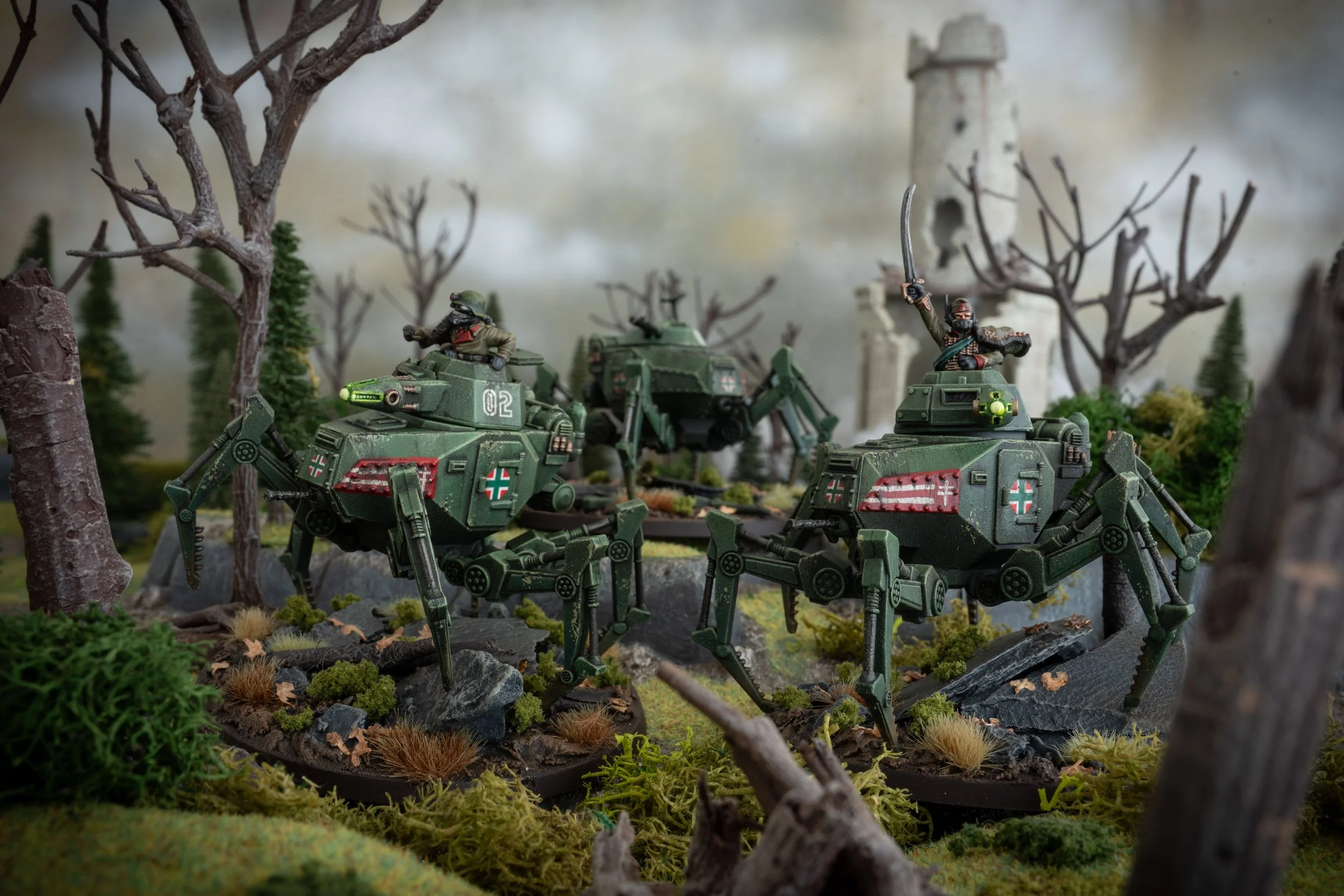 I’ve had a fascination with Hungary and it’s history for a while and have collected a large army for Bolt Action, so extending this into Konflikt 47 was a natural progression. What is particularly fun is I can draw on different eras of Hungarian martial history other than WW2 and mix it in as the setting is very accommodating of this. Once I saw the direction of the Axis forces in the 2025 version of the game I was immediately inspired to give my own twist to my army. The heraldry on the Stahltruppen and VogelSpine walkers is inspired by medieval Hungarian knights, Napoleonic Hussars as well as WW2 insignia. I love that you can do that with this setting.